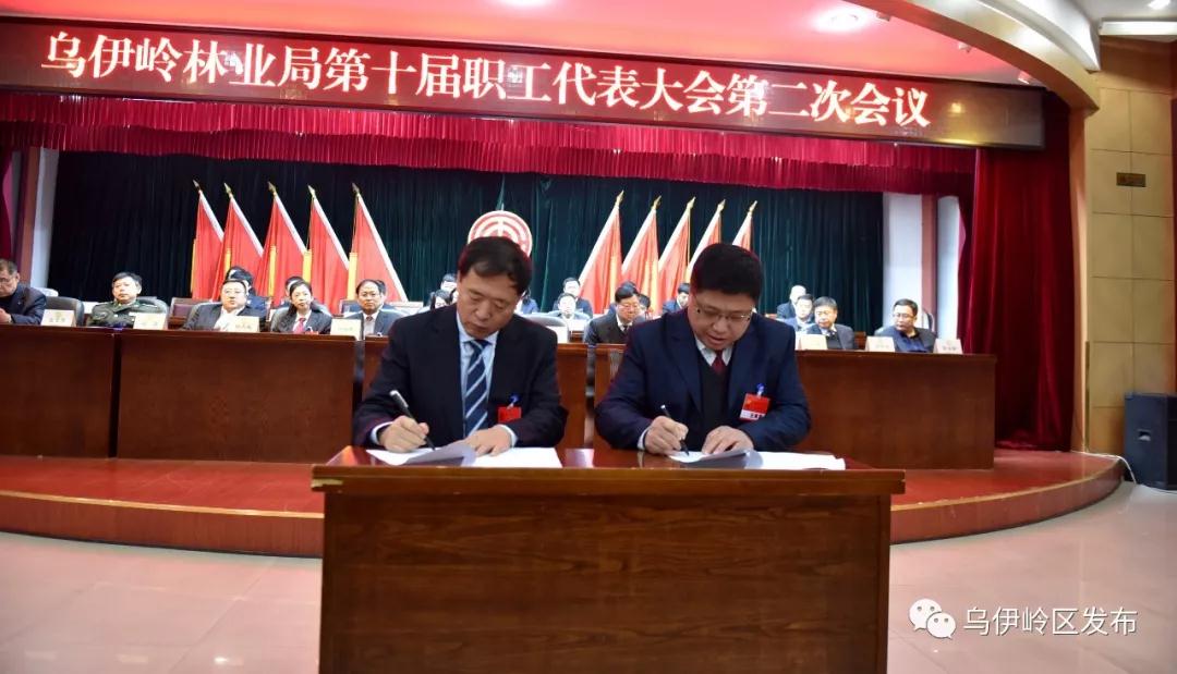 林业局局长刘剑铭和林业局总工会主席许养文代表林业局全局职工签订了《林业局2018年-2019年集体合同》
