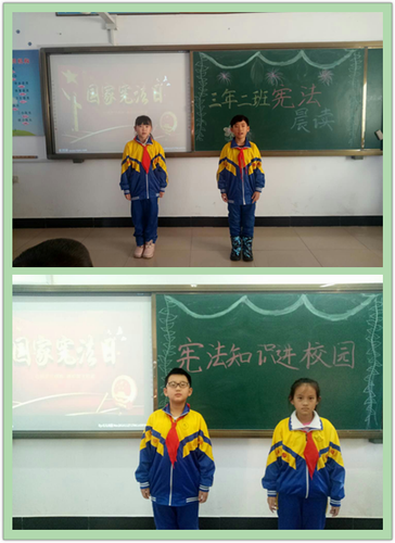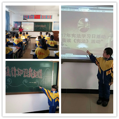 根据市人大常委会办公室《关于印发开展2017年“12.4”》国家宪法日系列宣传活动实施方案(伊人大办发【2017】42号)文件精神要求,今年的宪法日活动主题为“学习贯彻党的十九大精神 维护宪法权威”,在前期“学宪法 讲宪法”主题活动的基础之上,依托学校课程的开设,学校利用晨读时间,让宪法知识走进校园。